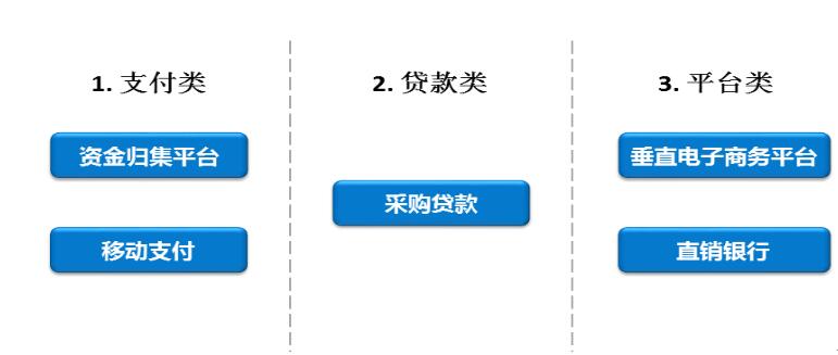 互联网金融产品主要处理三个方面的问题:支付类、贷款类、平台类。
