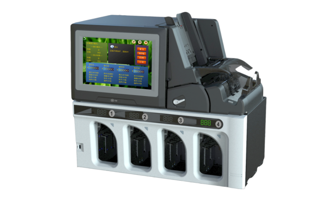 4个出钞口,1个退钞口, (计数清点两个钞口可按批量交替连续出钞) |
